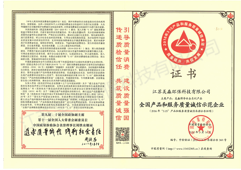 2016年全國產(chǎn)品和服務質(zhì)量誠信示范企業(yè)-凈水全系列產(chǎn)品