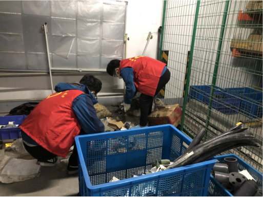 美淼控股黨支部全體黨員及積極分子在支部書記王惠琴的帶領(lǐng)下,前往美淼大廈西邊出口及地下車庫東北角開展衛(wèi)生清潔義務(wù)勞動,進行雜物整理及垃圾清理等工作。黨員志愿者們自帶了推車、手套、垃圾袋等清理工具,明確工作任務(wù)后,大家?guī)峡谡质痔祝杆傩袆悠饋恚兔恳惶幮l(wèi)生死角展開“較量”。