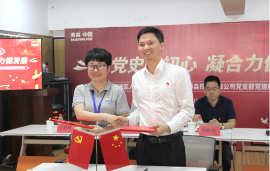 簽約儀式,區(qū)人社局考培中心黨支部書記曾小林和美淼控股支部書記王惠琴分別介紹了各支部黨建工作特色,促進(jìn)相互了解,確保結(jié)對(duì)共建工作取得實(shí)效。隨后,雙方黨支部書記在結(jié)對(duì)共建協(xié)議上簽字。區(qū)人社局副局長(zhǎng)、機(jī)關(guān)黨委書記周曉忠向美淼黨員代表贈(zèng)送了黨史學(xué)習(xí)相關(guān)書籍。